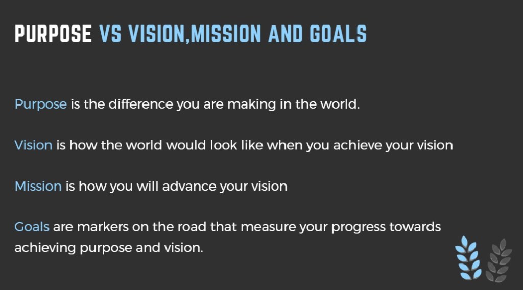 One thought on “Purpose vs vision, mission and goals”